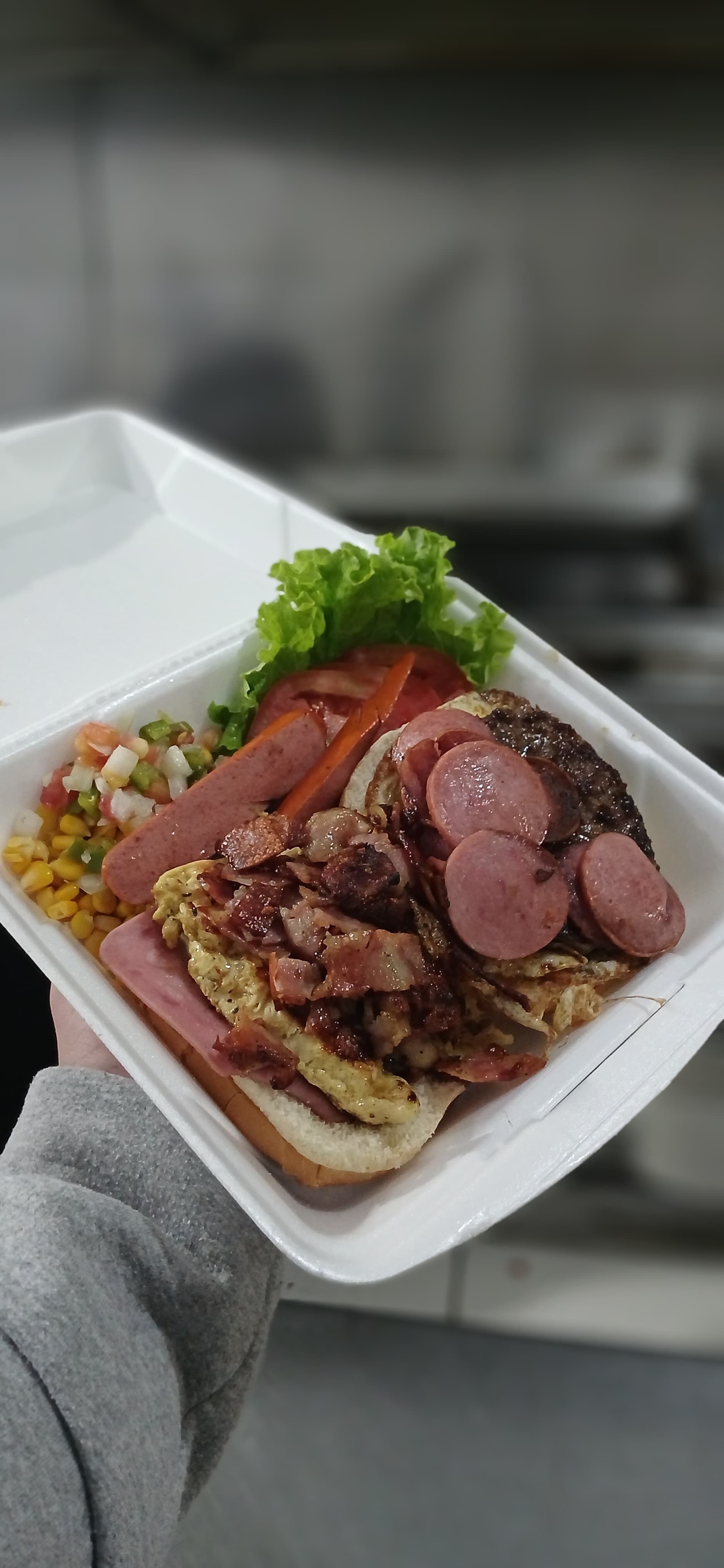 Pepino, Tomate, Alface, Vinagrete, Ervilha, Milho, Salada, Presunto, Queijo, Salsicha, Ovo, Bacon, Calabresa, Frango, Hamburguer, Pão, Batata Frita